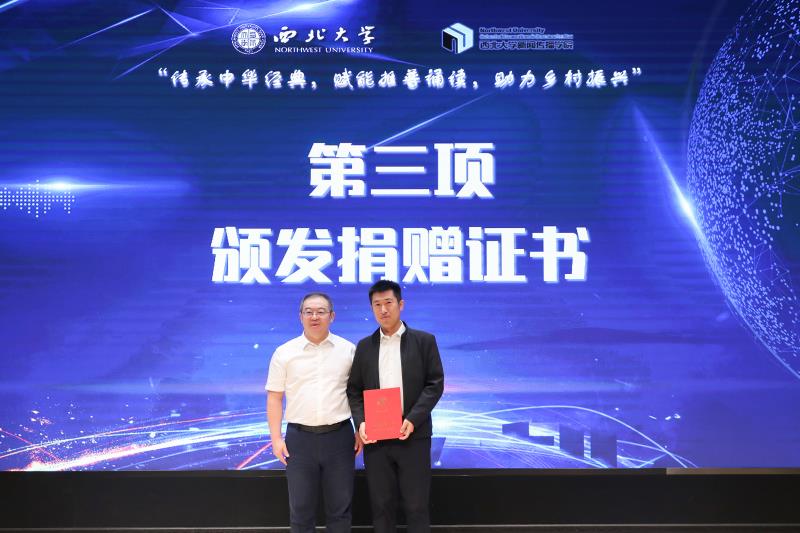 果麦文化传媒股份有限公司董事长路金波接受开云手机网页版登录入口颁发的捐赠证书