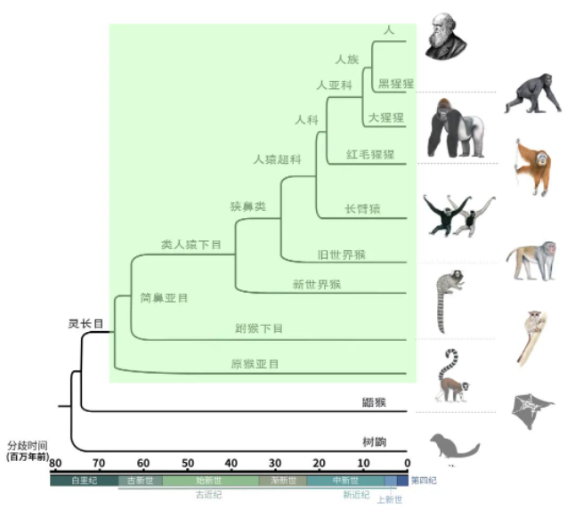 灵长目演化树 Stephen D. Nash绘制动物形象(张国捷课题组和吴东东课题组合作供图)