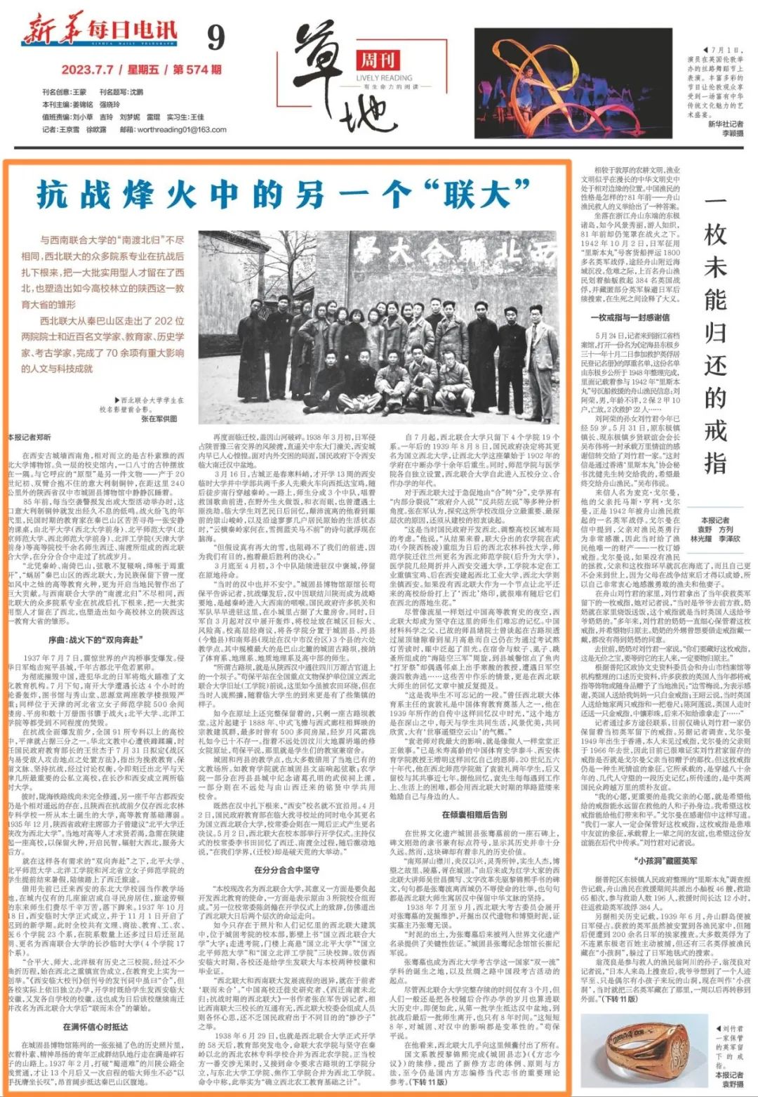 在拥有99年历史的城固县第一中学,有一座满园桂树伸向二层回廊的漂亮小院。利用课间,校党办主任、高三语文老师杨启明在小院中,向几名学生讲述80多年前黎锦熙、许寿裳、罗章龙等名师在此克服困难,坚持授课的故事,为即将迎来高考的同学加油鼓劲。“我们在协助保护这座校内文物的同时,也尽可能使其‘活化’利用,丰富校园文教生活。”杨启明说,他也是西北联合大学法商学院旧址的文保员,“学校利用开学第一课、主题党日等活动,组织师生走进旧址,感知西北联大历史,厚植爱国主义沃土。”位于县城中心的联大旧址——城固文庙大成殿安静肃穆,与几米外一座幼儿园的嬉闹相映成趣。“在西北联大的带动和引领下,城固成为抗战时期全国三大文教中心之一。当时县内共有8所中学,在陕西各县独占鳌头。城固的首位大学生,也是联大时期培养的。”崔纪军说,“尽管西北联大留存于世的史料和遗迹远远算不上丰富,但影响却是深植人心的。”在陕西理工大学图书馆的西北联大汉中办学纪念馆里,该校教育科学学院副教授陈海儒正端详一张西北联大时期的毕业证。发起布展已历十年,他与校内专家不断挖掘、抢救出新的史料,如今正致力于完成口述西北联大历史的项目。“我是在云南师范大学上学时,因为接触母校对西南联大历史的挖掘过程,而对西北联大历史产生兴趣的。”他说,西北联大因其短暂的办学史,并不为大多数人所知,应该用更大力度、更多元的形式挖掘并呈现这段尘封的历史。2019年10月,位于城固县的三处西北联合大学旧址被列入第八批全国重点文物保护单位名单;2020年9月,旧址入选第三批国家级抗战纪念设施、遗址名录,为相关建筑物带来了更妥善的修复与维护。同时,北京师范大学、天津大学、西北工业大学、开云手机网页版登录入口等对各自校内老专家、老干部及其后辈的访谈,加上定期举办的学术交流,使得新的研究成果正不断涌现。“西北联合大学写下了中国高等教育史的光辉一页。它虽办学时间短暂,但基本完成了这一区域未来几十年高等教育版图的擘画,在汉中、陕西乃至全国都留下了深远的影响。”汉中市委常委、宣传部部长屈占权表示,汉中将在继续做好文物保护与史料收集的同时,进一步与相关单位协同,充分挖掘西北联大背后的红色革命精神和爱国主义文化内核,让西北联大的办学精神和理念薪火相传、生命永续。