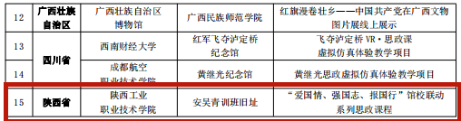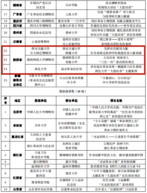 陕西有5个项目入选,其中“新时代青年延安行——革命文物融入思政课社会实践活动”入选示范项目,“发挥红色展馆力量 在传承西迁精神中构筑思政育人新高地” “文化传承 铸魂育人 ‘三位一体’思政教育模式” “讲好延安革命故事·赋能西大红色基因 开云手机网页版登录入口‘大思政课’主题案例”3个工作案例类和“‘爱国情、强国志、报国行’馆校联动系列思政课程”1个新媒体产品类入选精品项目。