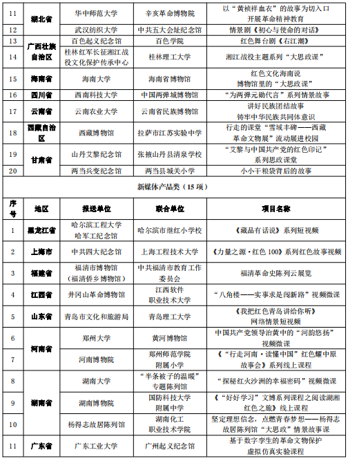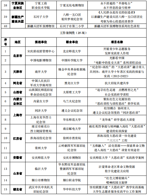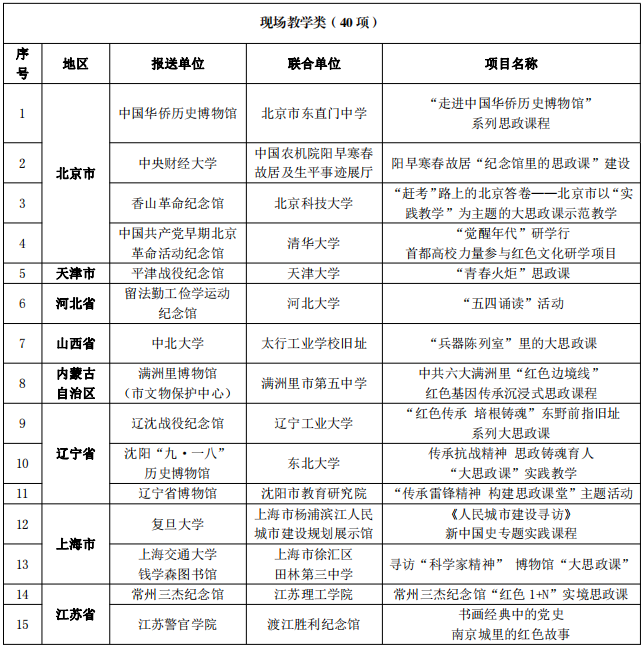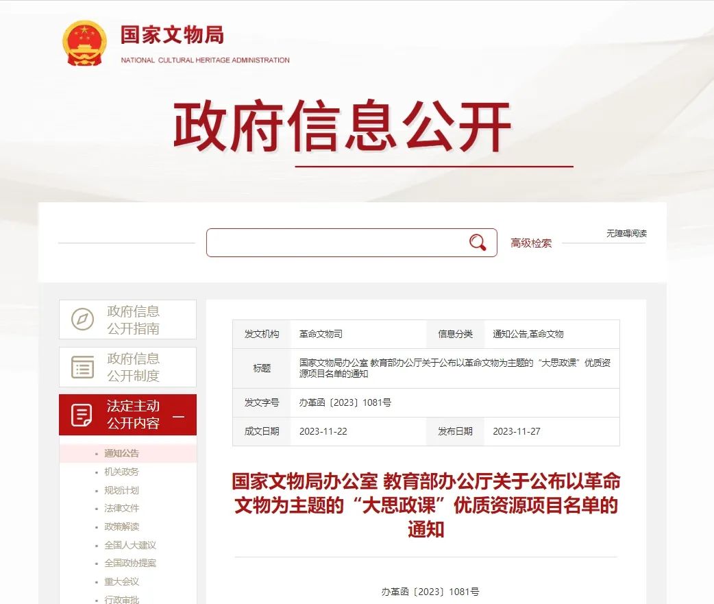 日前,国家文物局、教育部联合开展以革命文物为主题的“大思政课”优质资源建设推广工作,经中央有关单位、部属高等学校、省级文物部门、省级教育部门推荐和专家审核,确定了10个示范项目、100个精品项目名单。要求用好革命文物资源,充分发挥革命文物、革命文化在爱国主义教育和“大思政课”建设工作中的作用,努力推进革命文物融入大中小学思政教育一体化建设。