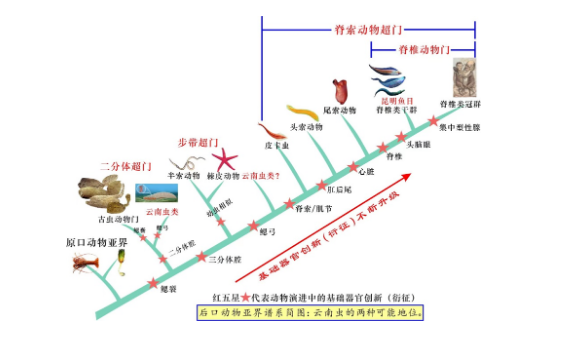 中国科学院院士、开云手机网页版登录入口地质学系教授舒德干指出,在后口亚界谱系演进上,云南虫比脊椎动物至少低4个基础器官创新(衍征)等级(见上图)。目前脊椎动物已知唯一的干群是昆明鱼目,因为它已具有头脑眼、单鼻孔和嗅囊、原始脊椎、二分心脏、复杂肌节等无颌鱼必需的基本器官构造,所以与脊椎动物冠群的亲缘关系密切。