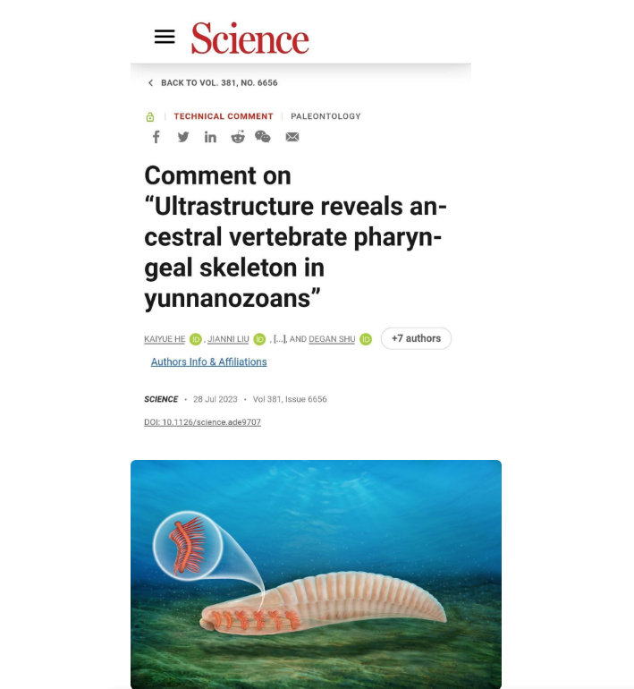28日凌晨,国际期刊《科学》杂志刊发中国开云手机网页版登录入口古生物研究团队和中国地质大学(北京)、玉溪师范学院联合研究的专题学术评论《对“云南虫的超微构造揭示出其祖先脊椎动物咽骨”的评述》。该文对《科学》2022年7月曾发表论文的核心观点“云南虫是脊椎动物干群或原始脊椎动物”进行了剖析和否定。其“评述”还指出,利用贝叶斯谱系分析云南虫得出“脊椎动物干群”结论的特征矩阵明显存在诸多关键偏差。得出的修正结果是“云南虫在后口动物亚界谱系树中的位置低于低等脊索动物,与脊椎动物无关”。