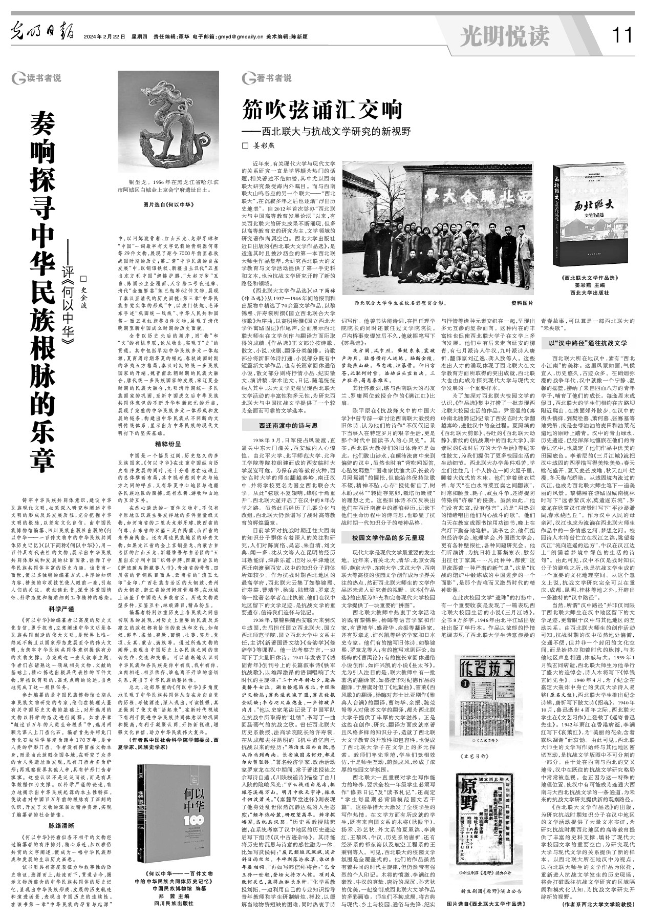 《西北联大文学作品选》的出版,为研究抗战时期知识分子在汉中地区的文学活动提供了大量文本实证,为研究抗战时期西北地区的高等教育提供了丰富的史料支撑,填补了现代大学校园文学的重要空白,为研究现代大学与现代文学的关系提供了新的样本。以西北联大所在地汉中为视点,以西北联大师生的文学作品为依托,重新进入抗战文学发生的历史现场,将会打破既往抗战文学研究的区域隔阂和模式化认知,为抗战文学研究开辟新的视野。