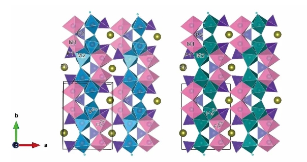 褐磷钒铁铅石和绿磷铁铅石均属于绿磷铝钡石族。褐磷钒铁铅石呈半透明,为褐色或绿褐色,呈他形粒状、板状、粒径约5-100um,常包裹黑钒铁矿,分布在黄铜矿中,与方铅矿、闪锌矿、硬石膏等伴生。绿磷铁铅石呈深绿色,未见包裹黑钒铁矿。两种磷酸盐新矿物的晶体结构特征与绿磷铝钡石族其他矿物相似,均为单斜晶系。