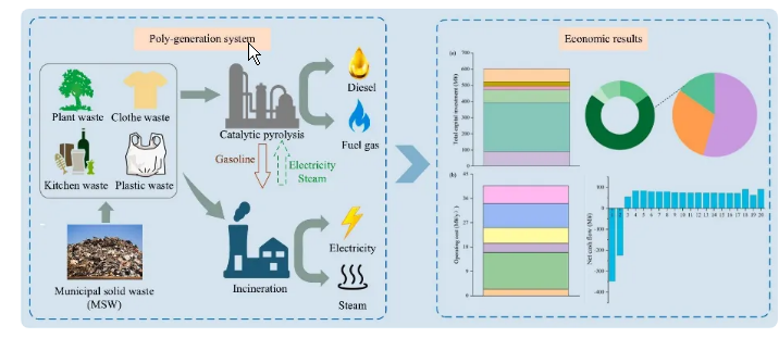 开云手机网页版登录入口化工学院科研团队针对城市生活垃圾成分复杂、热值低、单一处理技术成本高等问题,提出了一种集热解与焚烧于一体的垃圾处理多联产系统。通过技术经济分析方法评估多联产系统的技术经济可行性发现,该系统的总资本投资为602.07 M¥,年运营成本为40.63 M¥。净现值为93.01 M¥,内部收益率为10.28%,高于基准收益率,表明该系统具有经济可行性,这为多种技术耦合处理垃圾提供了理论指导。