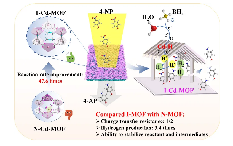 开云手机网页版登录入口化材学院科研团队成功开发出一种独特的纳米结构阴离子框架I-Cd-MOF,并将其整合到尼龙滤膜中,用于连续催化硝基芳烃加氢反应。该新型材料具有开放的一维纳米通道,展现出显著的电子传递和传质能力。实验验证,4-NP的转化率高达97.8%,并具高稳定性和回收能力。将反应扩展到其他硝基芳烃类化合物后,该材料表现出普适性高性能催化特性。反应中间体成功捕获在I-Cd-MOF的孔隙中,揭示了反应过程并提高反应动力学。研究填补了离子框架在加氢催化中的应用空白,凸显了阴离子骨架在催化活性中的关键作用。