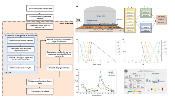 针对埋地基础工业设施面临的复杂腐蚀检测与评估难题,开云手机网页版登录入口化工学院科研团队将三角直觉模糊网络分析过程(TIFANP)与三角直觉模糊综合评价(TIFCE)相融合,构建了一种多层次、多指标的腐蚀评估方法,该方法能准确刻画腐蚀多元影响因素交互作用及其不确定性问题。将其应用于原油储罐底板的外腐蚀评估,评价结果与开罐检验结果相符。研究结果可为埋地基础工业设施安全运维与高效防腐管理提供科学依据与决策支持。
