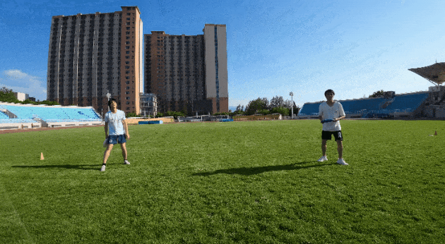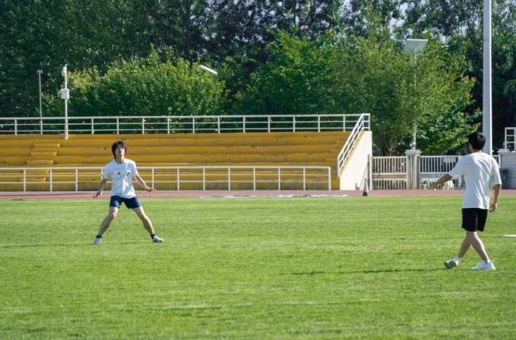 与此同时,作为一项要求高度团队合作的运动,组队训练是飞盘课的“标配”,同学们相互配合,多人一组,顺序接盘、折返跑接盘、假动作……各种考验团队合作和应变能力的实战训练在西操场有序进行,一个漂亮的传接盘引起欢呼阵阵,一个失误的飞盘弧线又让人忍俊不禁,在飞盘课上,骄阳和青春的面庞相得益彰。