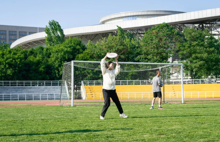 在引领学生掌握飞盘技巧的同时,郑权也十分注重课堂上体育精神和思政内容的引入。极限飞盘作为一项严格要求无身体碰撞、无裁判、男女混合的团队竞技运动,“守规矩、讲诚信、相互尊重、团队协作、不断创新战术都是飞盘运动所必不可少的,期待同学们能在课堂上能够学到敢于竞争、勇于创新的体育精神,并应用到以后的学习和生活中去。”郑权希望在飞盘课上能够真正落实“四位一体”的学校体育目标体系,让学生能够真正“享受乐趣、增强体质、健全人格、锤炼意志”。