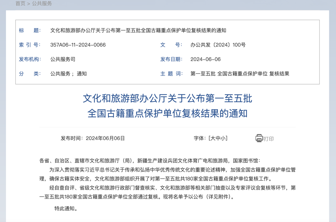 《关于公布第一至五批全国古籍重点保护单位复核结果的通知》
