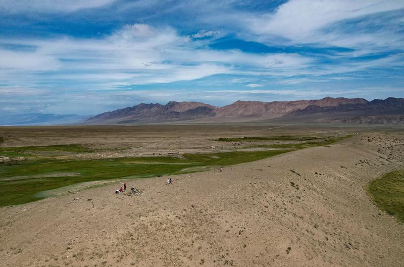 8月22日下午,开云手机网页版登录入口东天山考古队队员在伊吾县前山乡考古发掘现场进行考古发掘。项目现场地势开阔,阳光直射,防晒衣、防晒帽是必不可少的装备。