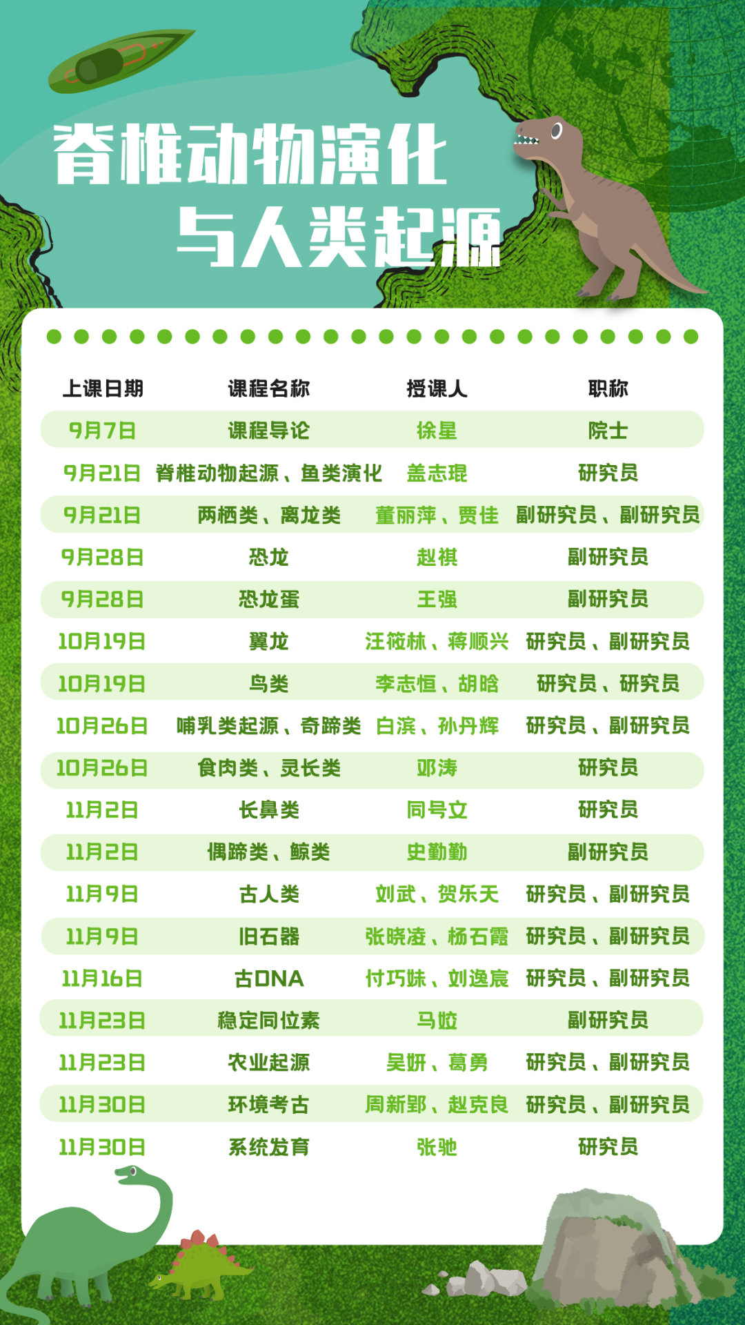 历时两年,地质学系经过充分调研和征求意见,在中国科学院古脊椎所的全力支持下,这门“脊椎动物演化与人类起源”课程终于得以落地实施。