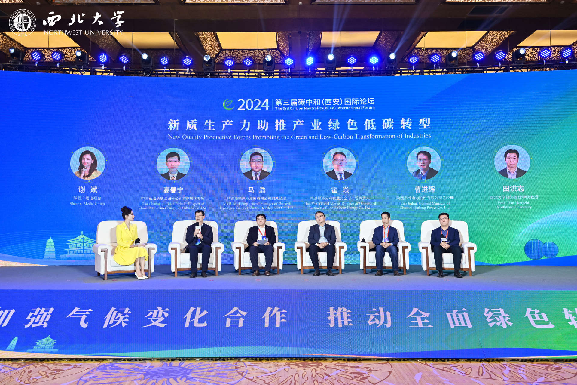 圆桌讨论环节,来自国内外高校及科研院所的专家学者和陕西氢能、长庆油田、隆基绿能、陕西秦龙等企业代表,围绕“新质生产力助推产业绿色低碳转型”“应对气候变化科技创新与人才培养国际合作”等议题进行讨论。