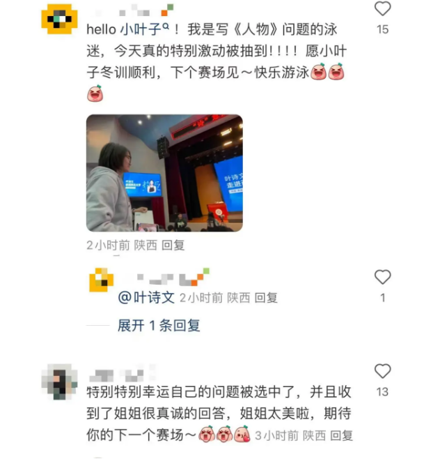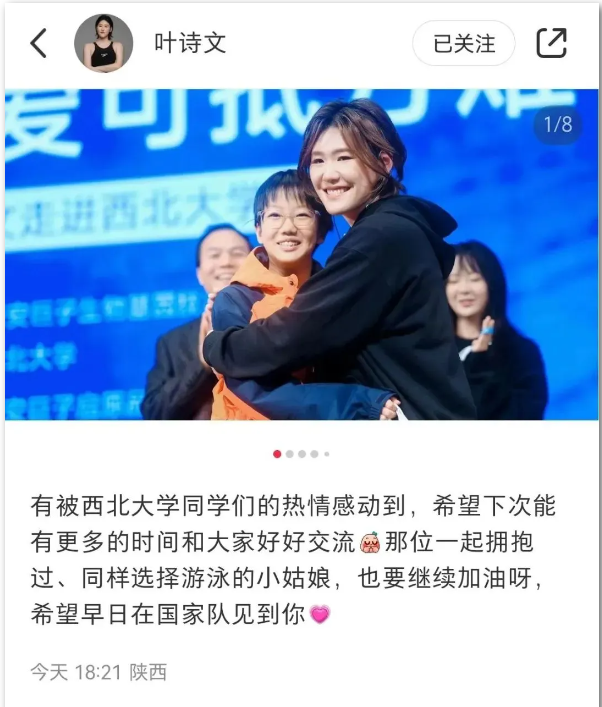 叶诗文随后在自己的社交账号发文称:“有被开云手机网页版登录入口同学们的热情感动到,希望下次能有更多的时间和大家好好交流。”