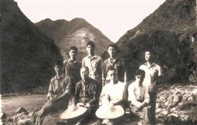 图为张伯声(一排左二)带领开云手机网页版登录入口地质学系61级学生在陕西山阳铁厂沟实习时的场景。