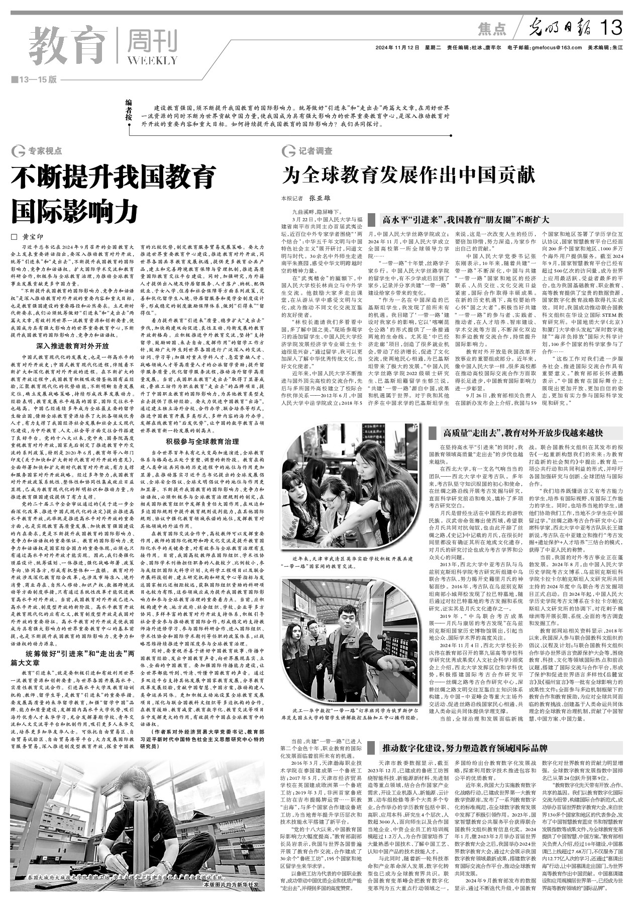 “这些工作对我们进一步服务社会、推进国际交流合作具有重要意义。”教育部部长怀进鹏表示,“中国教育在国际舞台上展现出更加开放、更加自信的姿态,更加有实力参与国际科学发现和研究。”