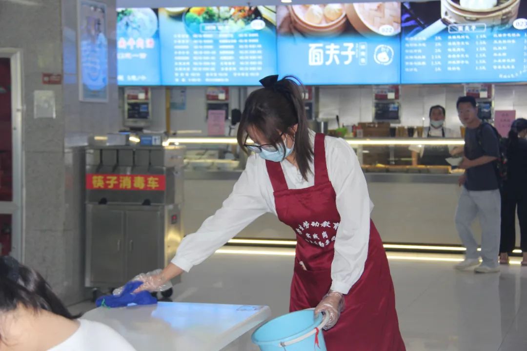 学校为强化劳动育人,在学生公寓、食堂还设立了劳动实践岗位,学生们可以参与学校“一站式”学生社区建设、楼宇管理,在这些“接地气”的劳动实践岗中锤炼品质、塑造自我,深入理解劳动创造价值的深刻内涵。