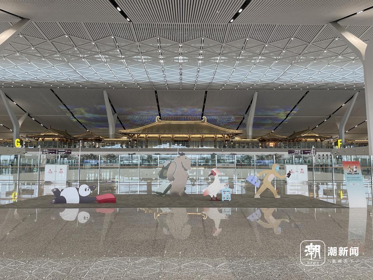 3月4日下午,潮新闻记者乘机降落在西安咸阳国际机场,发现T5航站楼里几个人正在“逆行”——拿好行李没有直接出站,反而前往值机层玩起了“机场walk”,目的地是仿唐式建筑里的西部机场博物馆。