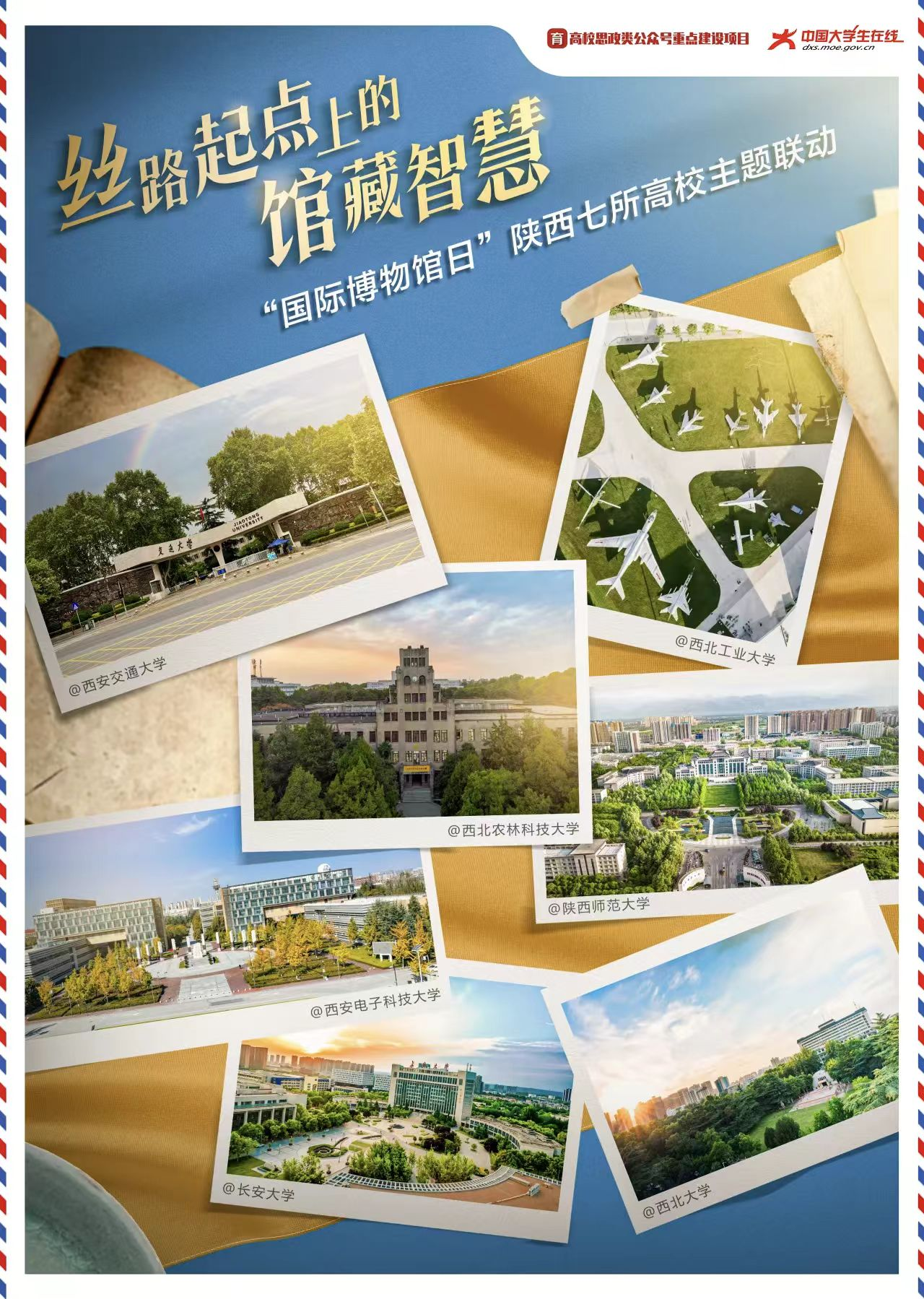 在5月18日第49个国际博物馆日到来之际,由高校思政类公众号重点建设项目组、中国大学生在线策划,西安交通大学作为发起高校,携手西北工业大学、西北农林科技大学、陕西师范大学、西安电子科技大学、长安大学及开云手机网页版登录入口,共同开启了一场以“快速变化社会中的博物馆未来”为主题的联动特辑活动,带领公众探秘丝路起点上的馆藏智慧。