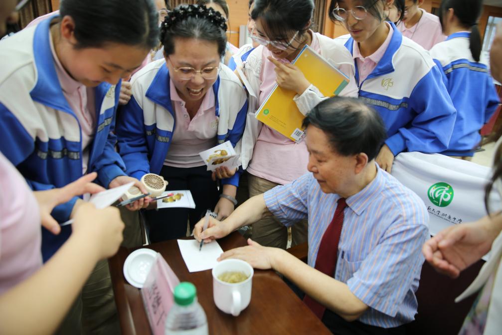 报告会活动结束后,一些同学们拥着舒德干院士,争相请求签名、题写勉励语句,并合影留念。舒院士面带微笑,一一满足同学们的愿望,用苍劲有力的字迹写下对年轻学子的期许。那些珍贵的签名与合影,不仅是师生间难忘的瞬间,更将成为激励同学们在科学道路上奋勇前行的动力,让科学的种子在校园里生根发芽,绽放出绚丽的花朵。