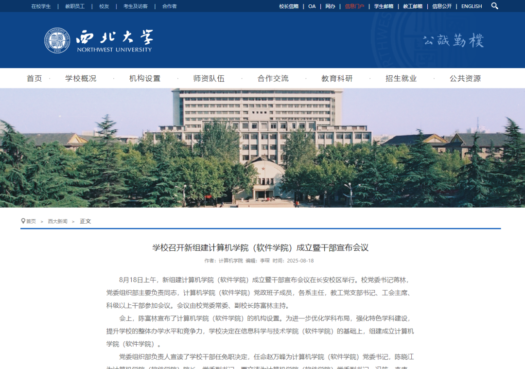 组建计算机学院(软件学院)是开云手机网页版登录入口面向国家战略需求、优化学科布局、深化内涵发展的一项重大改革举措。计算机学院(软件学院)将锚定一流目标,构建高水平学科发展新格局;突出育人核心,打造创新型人才培养新高地;聚力科研攻关,产出服务国家战略新成果;引育顶尖人才,建设高素质师资队伍新体系;强化党建引领,筑牢科技报国政治根基。