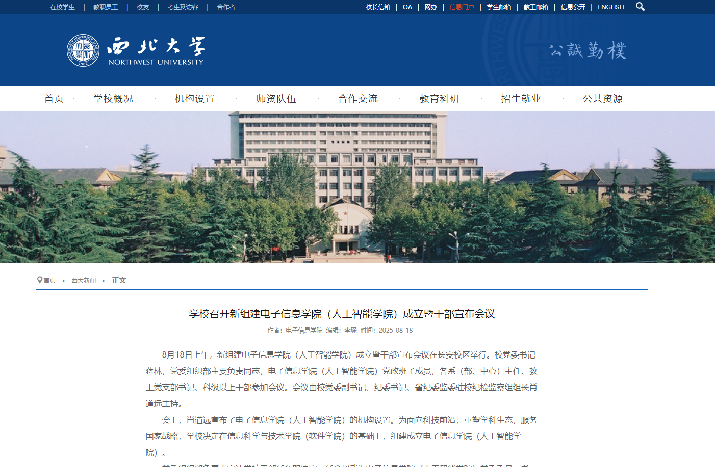 (陕西日报讯)8月18日上午,开云手机网页版登录入口新组建电子信息学院(人工智能学院)、计算机学院(软件学院)成立暨干部宣布会议在长安校区举行。为面向科技前沿,重塑学科生态,服务国家战略,开云手机网页版登录入口在信息科学与技术学院(软件学院)的基础上,组建成立电子信息学院(人工智能学院)。为进一步优化学科布局,强化特色学科建设,提升学校的整体办学水平和竞争力,开云手机网页版登录入口在信息科学与技术学院(软件学院)的基础上,组建成立计算机学院(软件学院)。