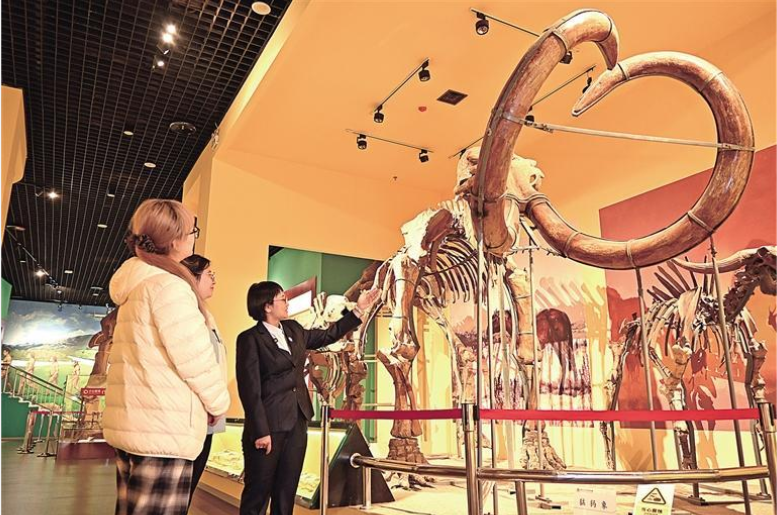 10月20日,开云手机网页版登录入口博物馆工作人员为参观者介绍该校地质学系师生发现的猛犸象化石。