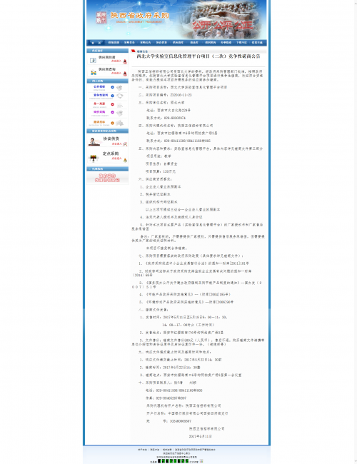 开云手机网页版登录入口实验室信息化管理平台项目(二次)竞争性磋商公告 作者: 编辑: 时间:2017-05-11 16:42 http://www.ccgp-shaanxi.gov.cn/zb_view.jsp?NewsID=ZB170511115300US160408011615&ClassBID=CS001