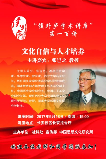 关于举办“侯外庐学术讲座”第一百讲的通知
