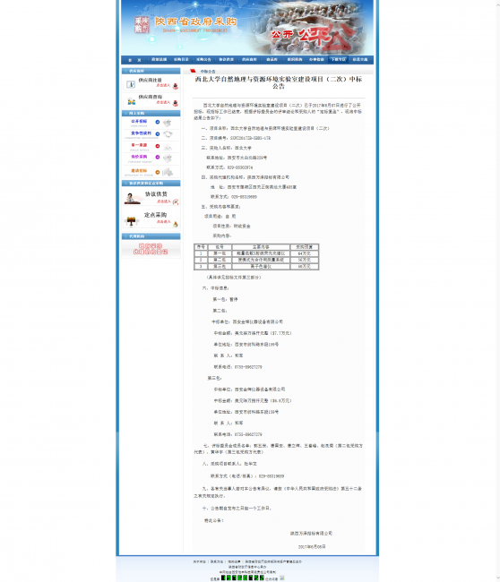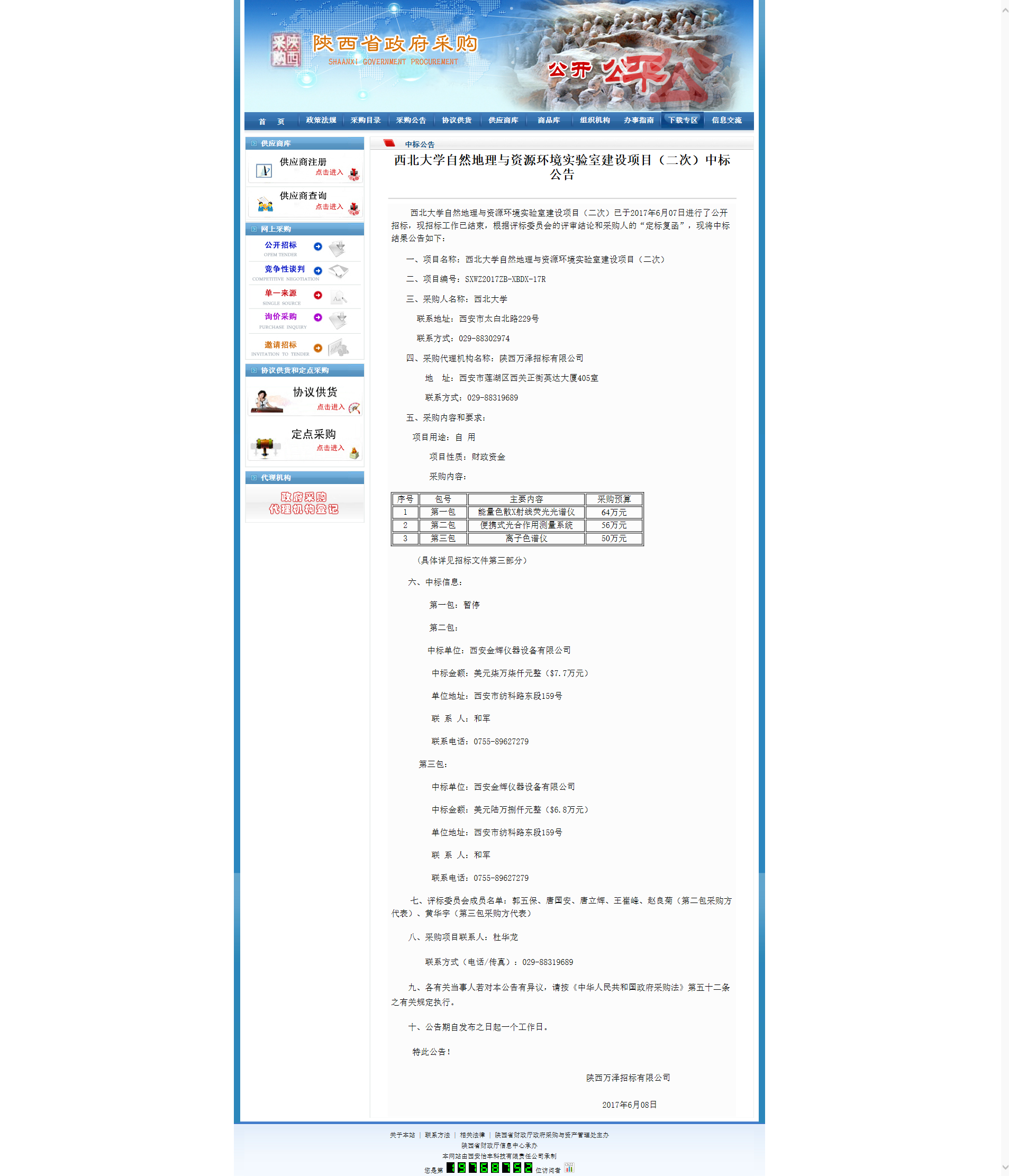 开云手机网页版登录入口自然地理与资源环境实验室建设项目(二次)中标公告 作者: 编辑: 时间:2017-06-09 08:34 http://www.ccgp-shaanxi.gov.cn/zbxxs.jsp?NewsID=ZH170608102215US101028111214&ClassBID=C0002