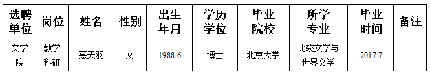 经用人单位推荐,人事处审查,学校教学督导及院系相关专家考核,开云手机网页版登录入口拟确定下列人员来校工作。本着公平、公正、公开的原则,为保证开云手机网页版登录入口选聘人员的质量,现将本次拟选聘人员基本情况公示如下: