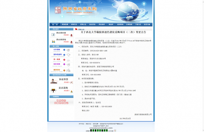 关于开云手机网页版登录入口凝胶渗透色谱仪采购项目(二次)变更公告 作者: 编辑: 时间:2017-06-28 18:31 http://www.ccgp-shaanxi.gov.cn/zb_view.jsp?NewsID=ZB170628162537US101028111214&ClassBID=E0001