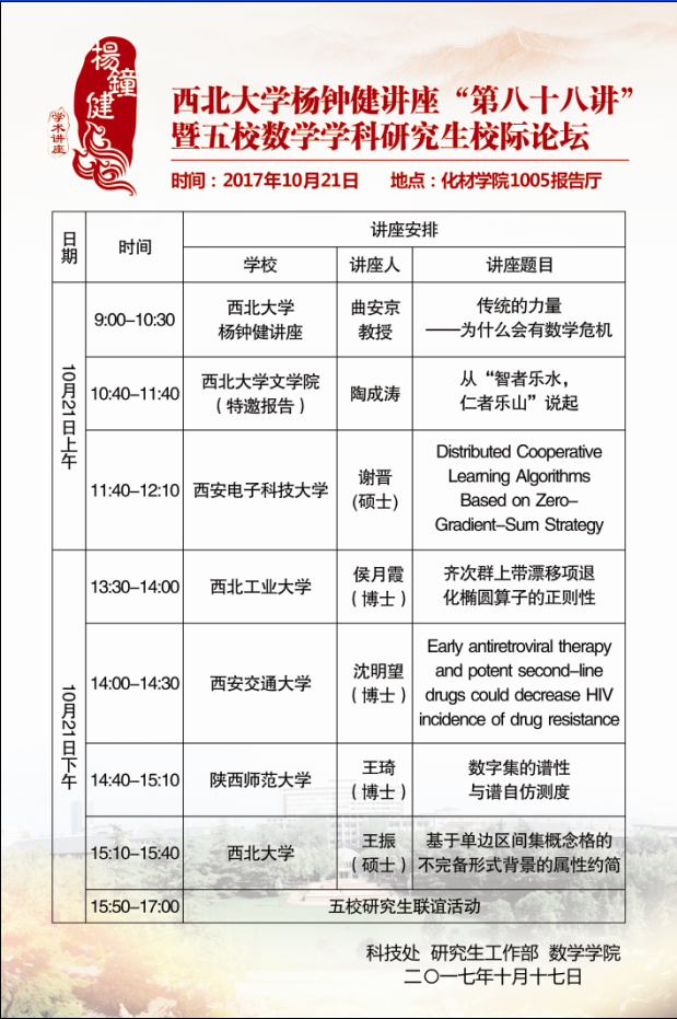 开云手机网页版登录入口杨钟健讲座“第八十八讲”暨五校数学学科研究生校际论坛