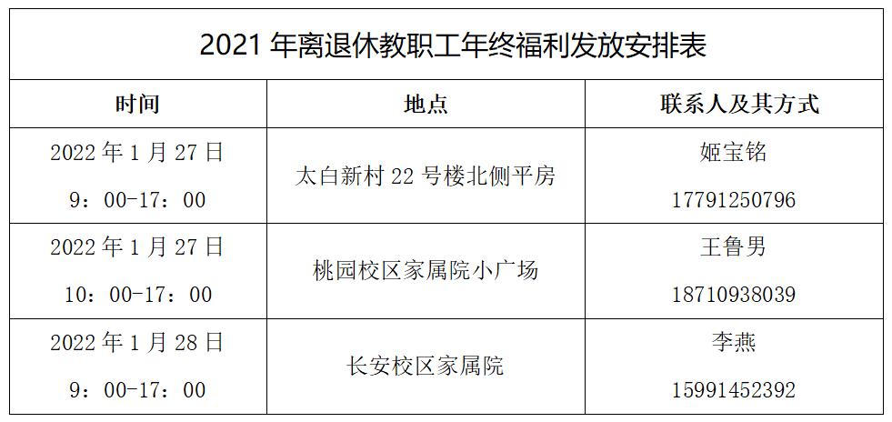 关于发放2021年开云手机网页版登录入口教职工年终福利的通知 作者: 编辑: 时间:2022-01-22 各分会: 2021年终福利(米、面、油)发放安排如下: 1、本次年终福利以分会为单位发放,各分会负责人需携带有效证件(工作证、一卡通等)在指定地点统一领取; 2、各分会在发放过程中实行一领一签字的形式并保留纸质签名单,确保准确发放; 3、分发数量严格根据各分会上报的名单统一配送,各分会的年终福利必须当天全部领走; 4、如遇防控要求变更或恶劣天气影响,发放时间另行通知; 5、本次未登记领取年终福利的教职工,待下学期开学后统一安排。 校工会 2022年1月22日