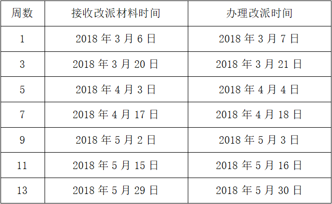 二、本学期改派受理时间表