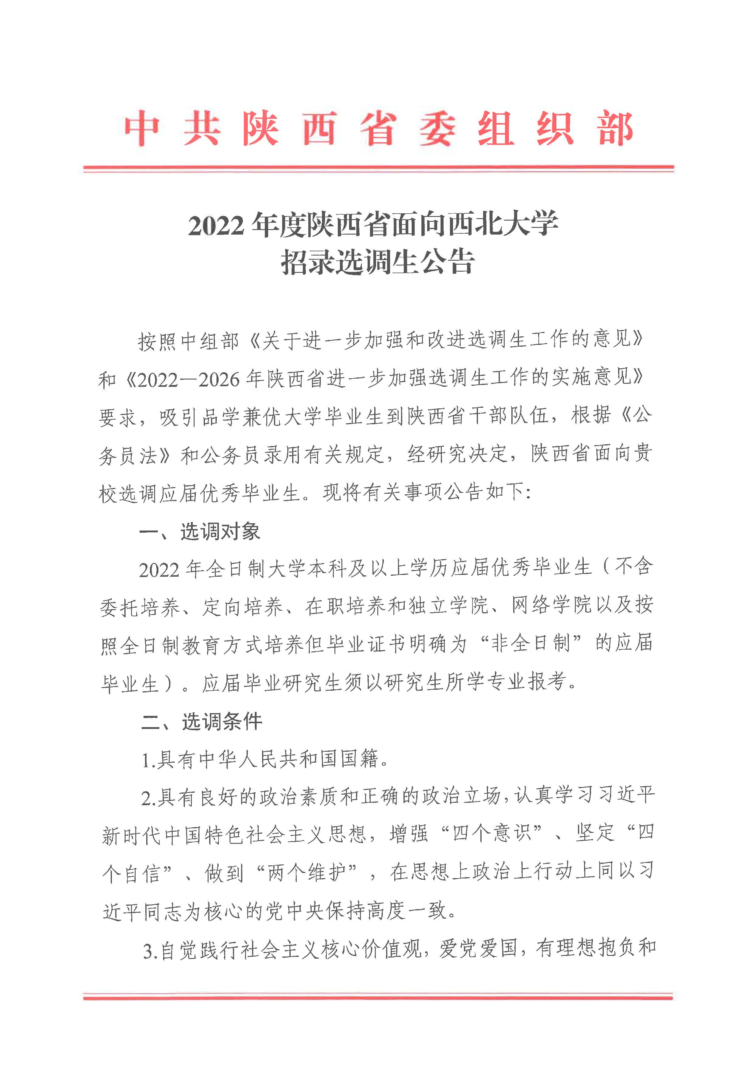 2022年度陕西省面向开云手机网页版登录入口招录选调生公告