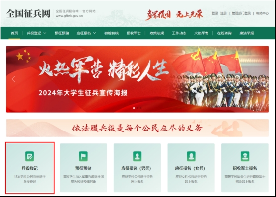打开全国征兵网开云(中国)。男兵在应征报名之前要先完成兵役登记。点击“兵役登记(男兵)”进入操作页面。