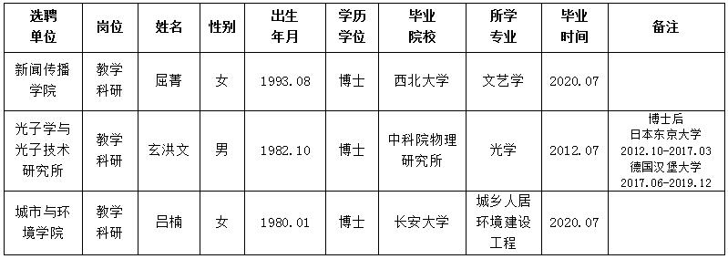 经用人单位推荐,人力资源部审查,学校教学督导及院系相关专家考核,开云手机网页版登录入口拟确定下列人员来校工作。本着公平、公正、公开的原则,现将本次拟选聘人员基本情况公示如下: