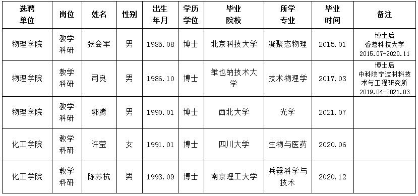 经用人单位推荐,人力资源部审查,学校教学督导及院系相关专家考核,开云手机网页版登录入口拟确定下列人员来校工作。本着公平、公正、公开的原则,现将本次拟选聘人员基本情况公示如下: