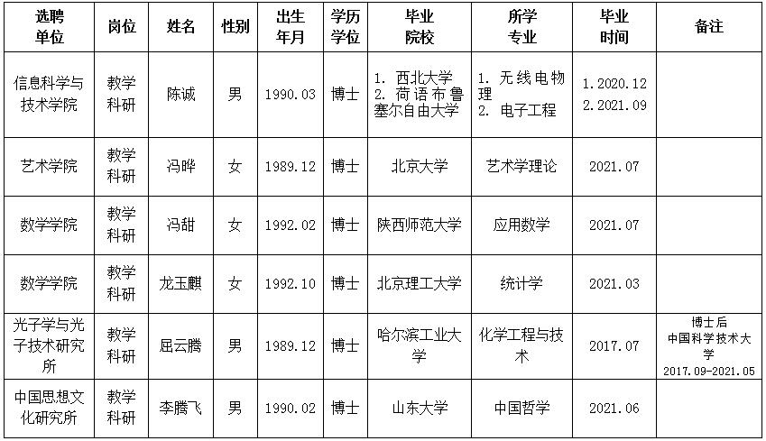 经用人单位推荐,人力资源部审查,学校教学督导及院系相关专家考核,开云手机网页版登录入口拟确定下列人员来校工作。本着公平、公正、公开的原则,现将本次拟选聘人员基本情况公示如下: