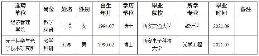 经用人单位及教学督导考核、学校研究,拟同意选聘下列人员来校工作,其聘任关系为A类人事代理。本着公平、公正、公开的原则,现将拟选聘人员基本情况公示如下: