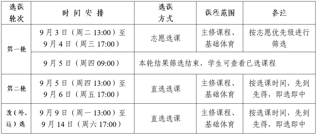 1.选课分三轮进行,具体时间如下: