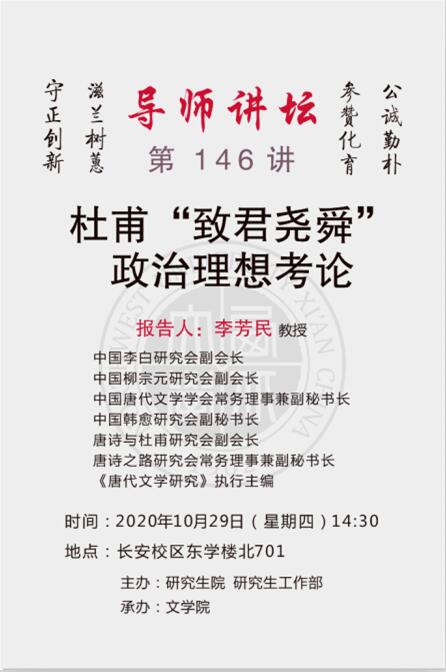 导师讲坛第146讲:杜甫“致君尧舜”政治理想考论