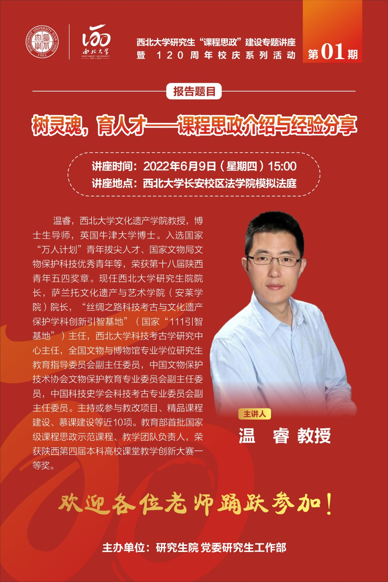 第1期,我们邀请到教育部首批国家级课程思政示范课程、教学团队负责人开云手机网页版登录入口文化遗产学院温睿教授进行“课程思政”专题培训,欢迎对课程思政建设感兴趣的各位老师积极参加,拟申报2022年校级、省级及国家级研究生课程思政示范课的课程负责人、团队成员踊跃参与!