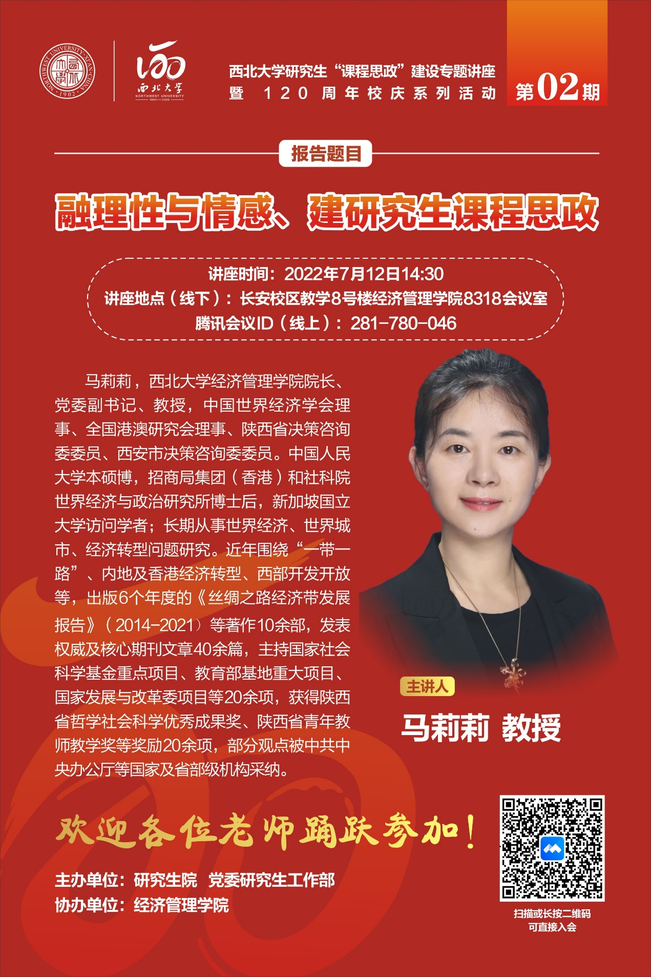 第2期,我们邀请到陕西省首批省级课程思政示范课程、教学团队负责人开云手机网页版登录入口经济管理学院马莉莉教授进行“课程思政”专题培训,欢迎对课程思政建设感兴趣的各位老师积极参加,拟申报2022年校级、省级及国家级研究生课程思政示范课的课程负责人、团队成员踊跃参与!