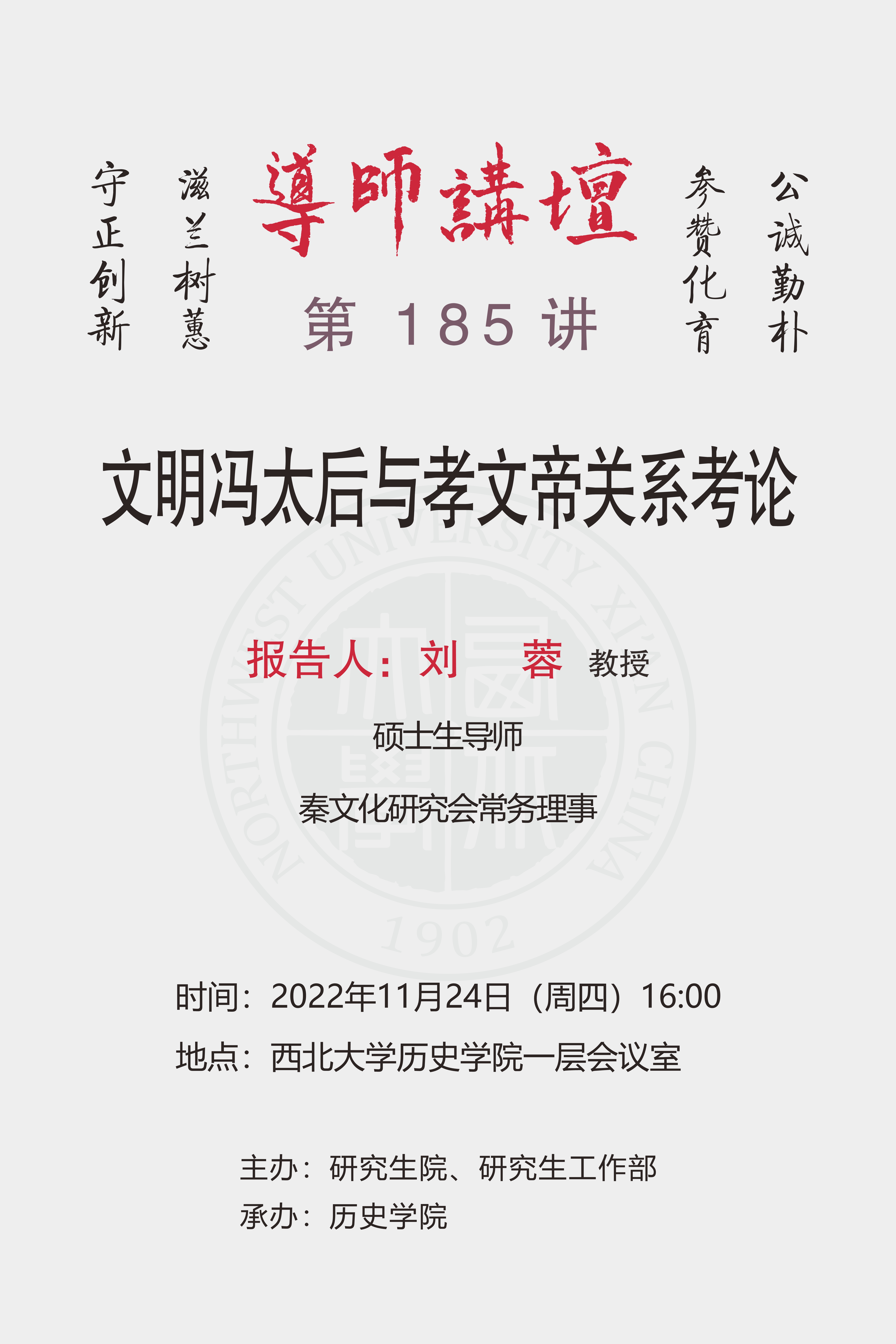 导师讲坛第185讲:文明冯太后与孝文帝关系考论