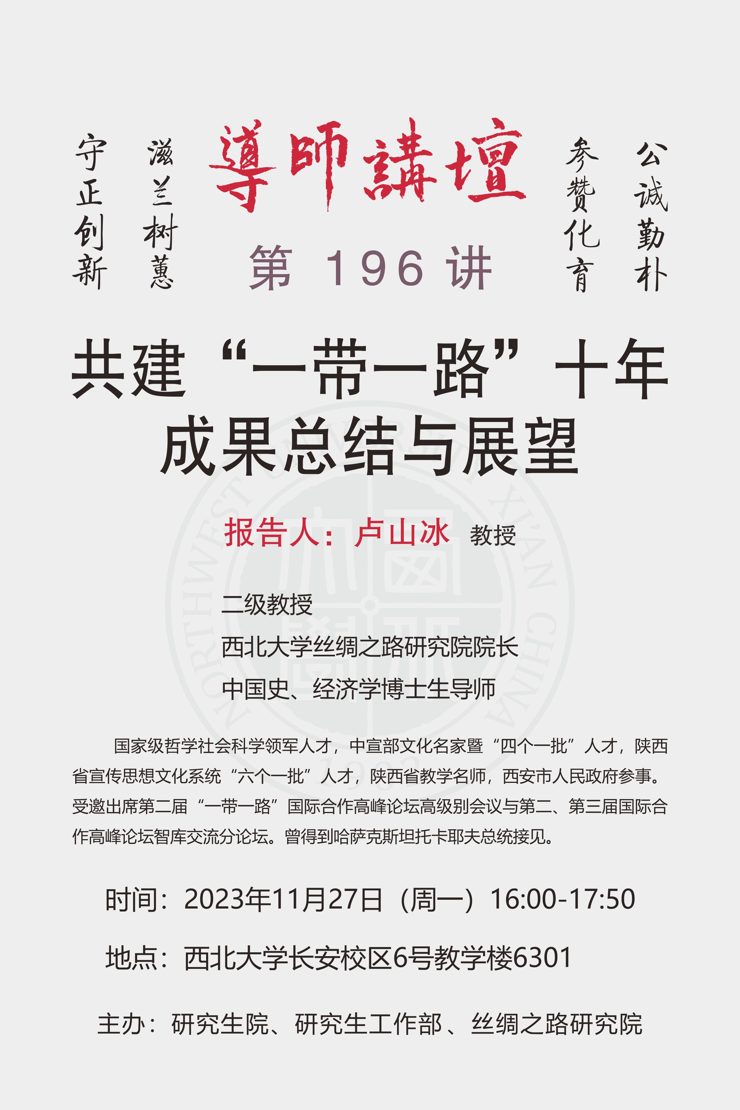 导师讲坛第196讲:共建“一带一路”十年成果总结与展望