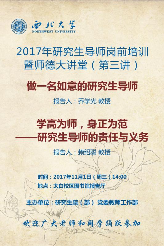 2017年研究生导师岗前培训暨师德大讲堂(第三讲)