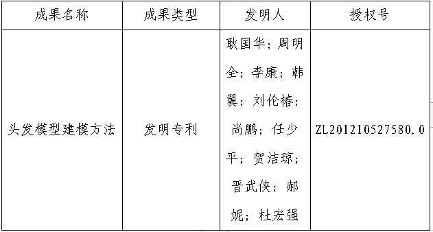 发明专利:“头发模型建模方法”。
